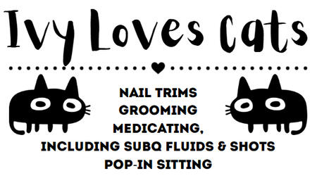 Welcome to the professional webpage for Ivy Loves Cats, a Las Vegas based service for mobile cat care. With twenty years experience in a professional veterinary setting, I am confident when it comes to handling and working with cats of all temperaments. My services range from nail trims to grooming, medicating to sitting.To inquire about prices & availability, you can contact me directly using one of the icons below to text, call, or send an email.I will reply in less than 24 hours.